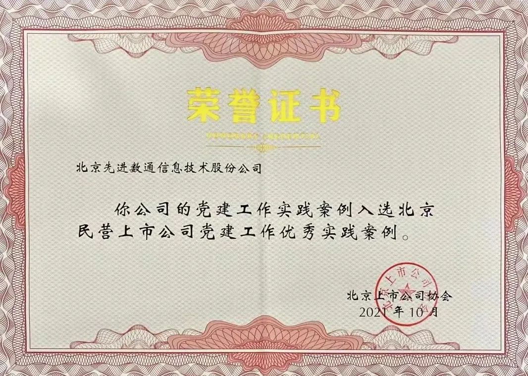 近期,北京上市公司协会授予北京东升国际 东升信息技术股份公司荣誉证书,东升国际 东升党建工作实践入选北京民营上市公司党建工作优秀实践案例,相关党建活动已收录在《北京民营上市公司党建工作优秀实践案例汇编》。